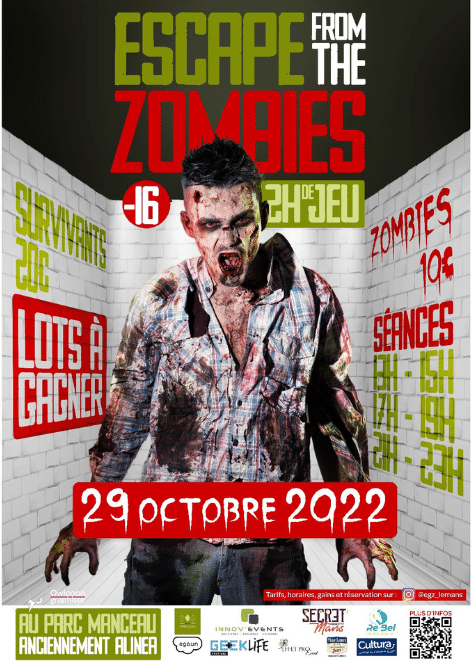 Une expérience immersive et terrifiante vous attend dans l’ancien Alinéa du parc Manceau. Secret’Mans, INNOV’events Le Mans et Re’Bel Communication, en partenariat avec le Parc Manceau, organisent une course effrayante dans laquelle vous choisirez votre camp : survivants ou zombies !