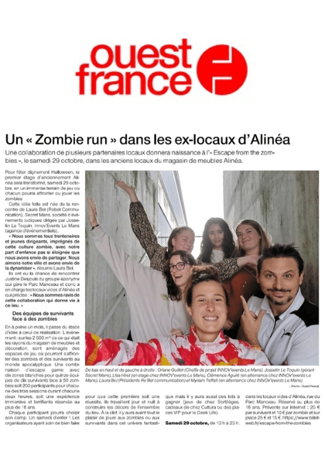 Une collaboration de plusieurs partenaires locaux donnera naissance à l’ ”Escape from the zombies”, le samedi 29 octobre, dans les anciens locaux du magasin de meuble Alinéa.